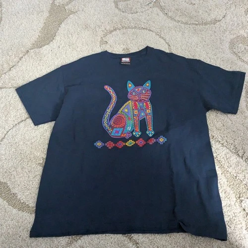 Sportex Vintage 90s Navy Blue Geometric Cat Graphic T-Shirt Mens Large USA Made