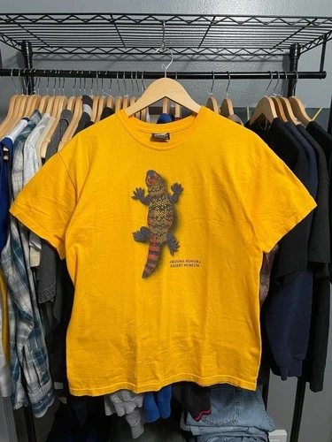 Vintage Arizona-Sonora Desert Museum Gila Gecko Print T-Shirt, Yellow, Size M