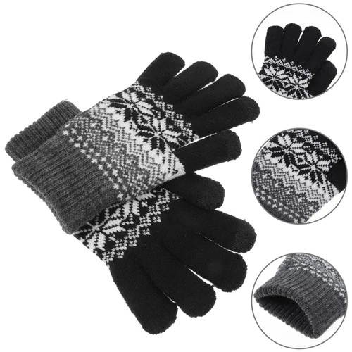 1 Pair Winter Warm Thickened Knitted Woven Touch Screen Gloves for Men Women