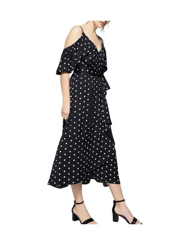 WITCHERY COIN SPOT DRESS Size 10 S Dark Navy Blue White Spot Dot Cocktail Party