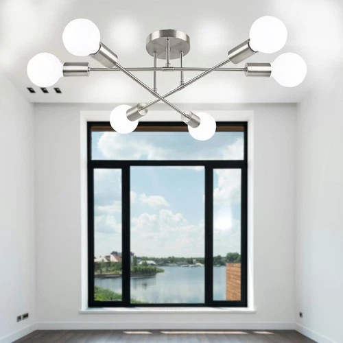 Sputnik Modern Ceiling Light Fixtures, Adjustable 6-Light E27 Chandelier, Semi-F