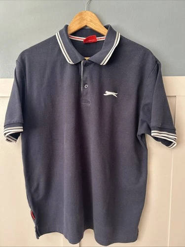 Slazenger Men's Polo Shirt Size XL Navy Short Sleeve Embroidered Logo Cotton Top
