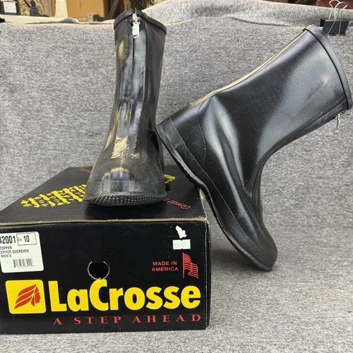 ✅Mens 10 LaCrosse Topper Black Rubber Zip Up Waterproof Overshoe NIB USA