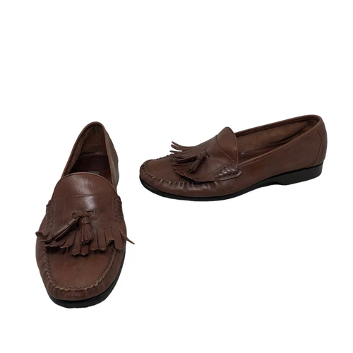Bally Mens Caramel Brown Leather Tassel Loafers Slip On Shoes 10.5 M