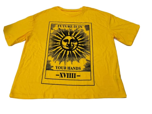Unisex T-Shirt Yellow Short Sleeve 'Future is on your hands' Tee Size XL