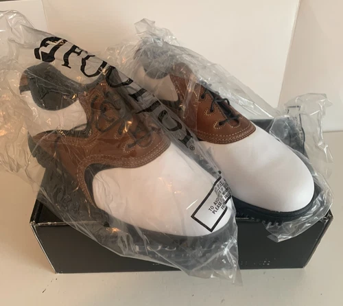 FootJoy Shoes Mens Size 12 Wide White Brown Leather Spiked Contour Series 54002