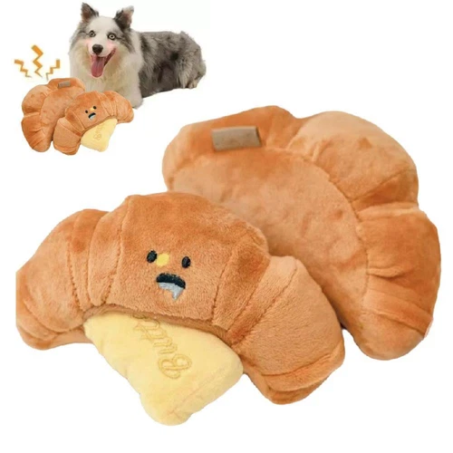 Croissant Shaped Food Sniffing Squeaky Dog Interactive Plush Dog Chew B8Q2 S7Z2