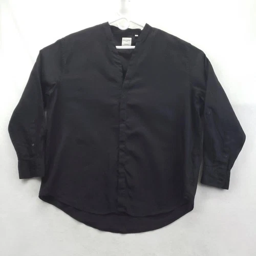 Murano Shirt Mens Big 2X Black Solid Long Sleeve Baird McNutt Linen Casual
