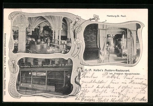 Postcard Hamburg-St. Pauli, G. A. Kolbe's Oyster Restaurant 1904