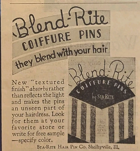 Blend-Rite Sta-Rite Hair Pin Co Shelbyville IL Vintage Print Ad 1934