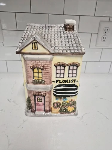 Vintage Cookie Jar Florist House Ceramic By Starite Industries