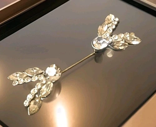 Vintage Antique Costume Jewelry Jabot Clear Rhinestone Stick Or Bar Pin