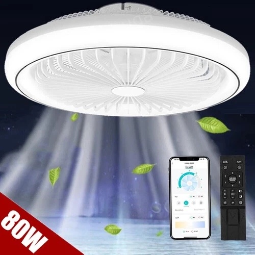 80W Ceiling Fan with Lighting LED Light Adjustable Wind Speed Remote Control UK