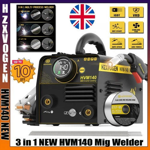 HZXVOGEN 3IN1 MIG Welder 140Amp Gasless 220V MIG/Lift TIG/Stick Welding Machine