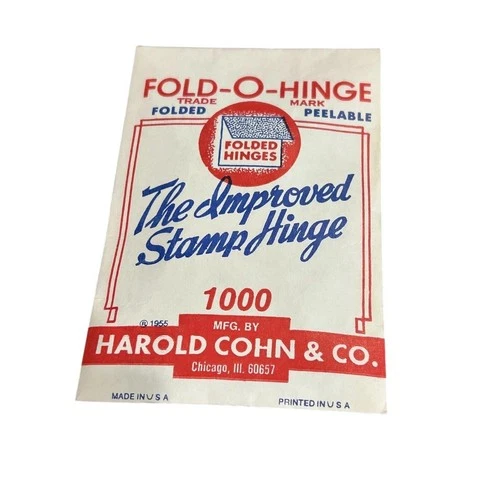 Vintage Fold-O-Hinge 1000 Stamp Hinges Harold Cohn & Co Chicago 1955 Made in USA