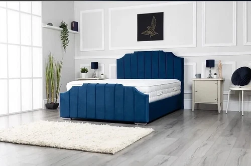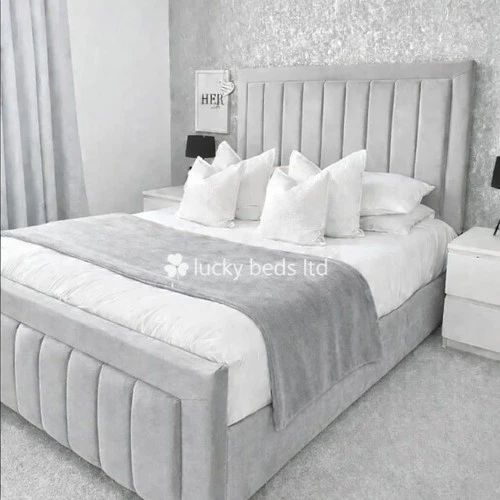 Upholstered Border Gas Lift Bed Frame Panelled Plush Velvet Double & King Size