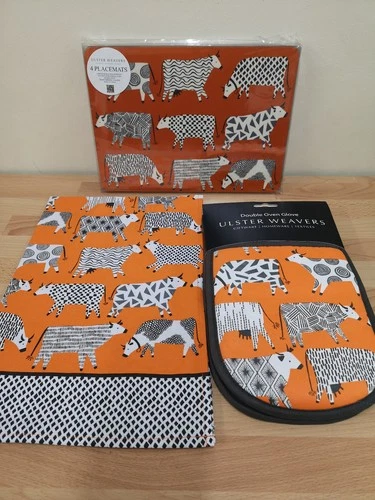 Ulster Weavers "Curious Cows" Tea Towel + 4 x Standard Placemats + Oven Gloves