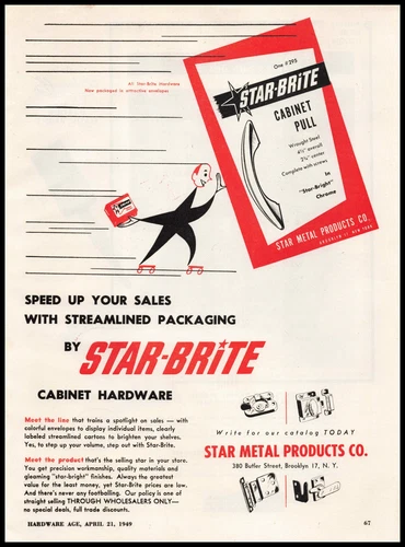 1949 Star Metal Products "Starbrite" Cabinet Hardware Brooklyn New York Print Ad