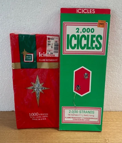 Vtg Icicles Boxes Brite Star Pyramid 1000 Strand and 2000 Strand Lot of 2 New