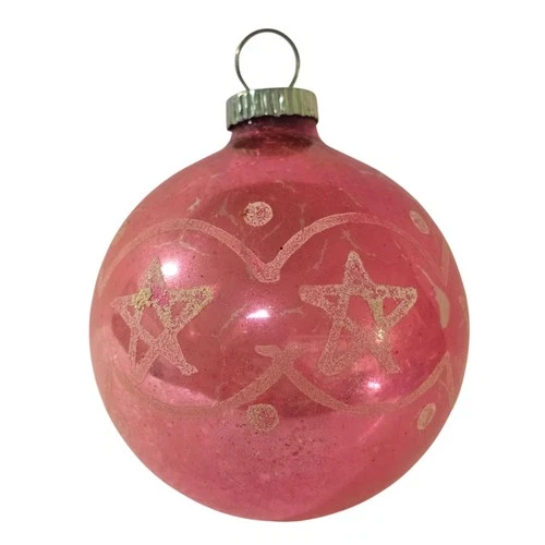 Vintage Shiny Brite Pink Stencil Stars Moon Mercury Glass Christmas Ornament 3"H