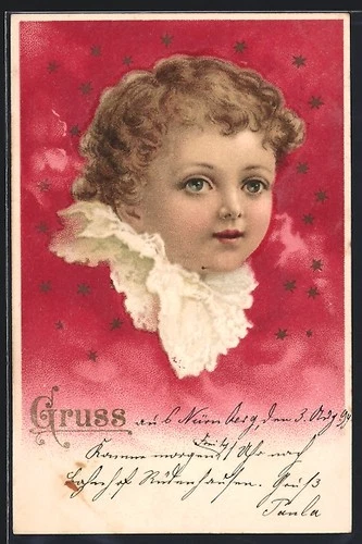 Children's Face in Front of Starry Sky, Postcard 1900