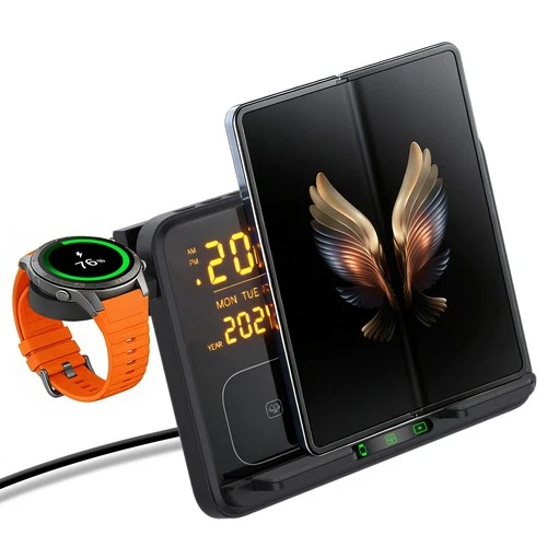 Digital Alarm Clock Wireless Charger Station For Samsung S26 S25 Galaxy Watch 8