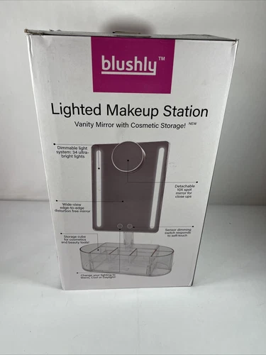 Blushly Lighted Makeup Station Vanity Mirror With Cosmetic Storage NEW
