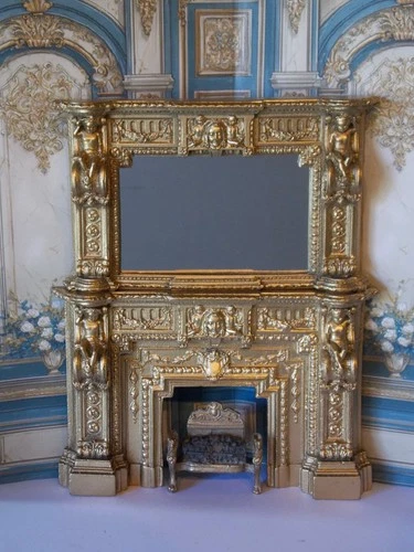 Dolls House 1 / 12Th Scale Ornate Cherub Fire Place Coal Fire Mirror Frame Set