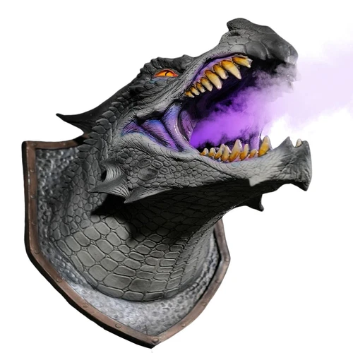 3D Dragon Head Wall Mount Sculpture Home Decoration Dinosaur Smoke Light Statue