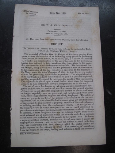 Orig 1845 Congress Doc Steam Boilers Patents Inventions Explosions Pittsburgh