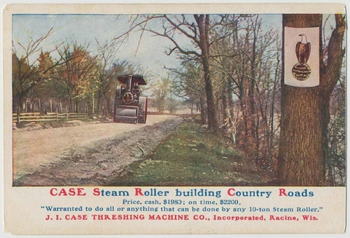 Case Steam Roller, Building Country Roads - Advertising Postcard