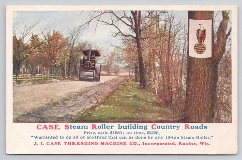 CASE Steam Roller J.I. Case Threshing Machine Company Racine Wisconsin Postcard