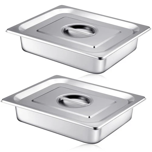 Mifoci Stainless Steam Hotel Pan with Lid, 2-1/2 Inch Deep 1/2 Size, Silver