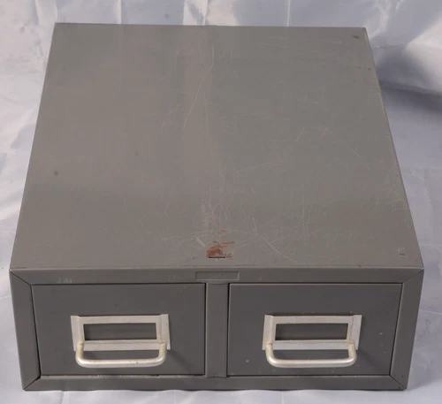 Steel Double Drawer Library 3x5 Index Card File Gray Cabinet USA Vntg
