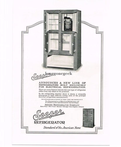 1926 Seeger Refrigerator Co. Steel Case New Electrical Fridge Vintage Print Ad