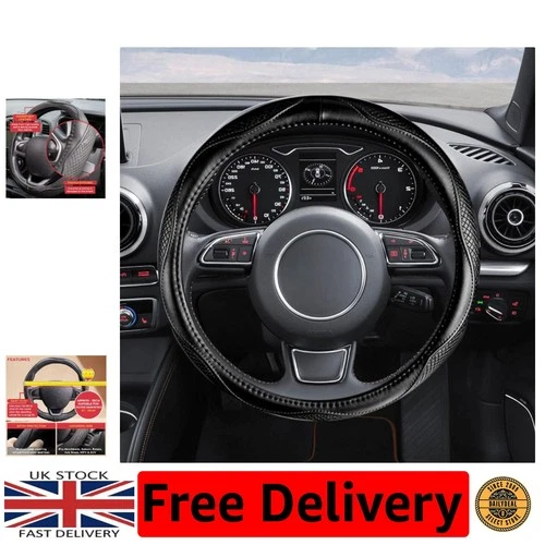 Breathable Microfibre Leather Steering Wheel Cover, Fit for Cars 37-38cm - Black