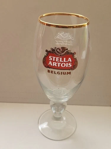 Stella Artois Gold-Rimmed Belgium Chalice Beer Glass Etched 40cl