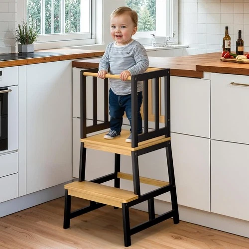Toddler Standing Tower for Kitchen - Wooden Nursery Step Stool for Kids - Solid