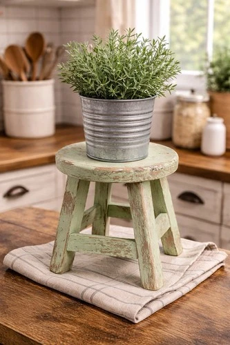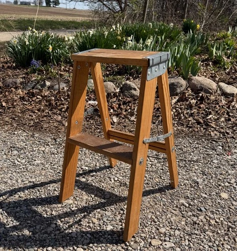 Vintage Style Rustic Wood Step Stool Distressed Farmhouse Plant Stand Primitive