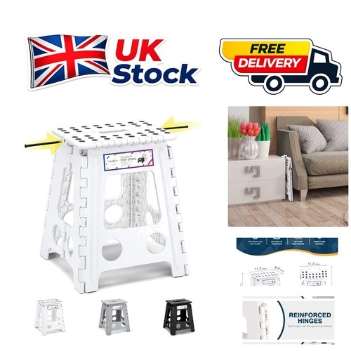 Elegant White 16 Inch Durable Folding Step Stool - Kids Safe & Easy Storage