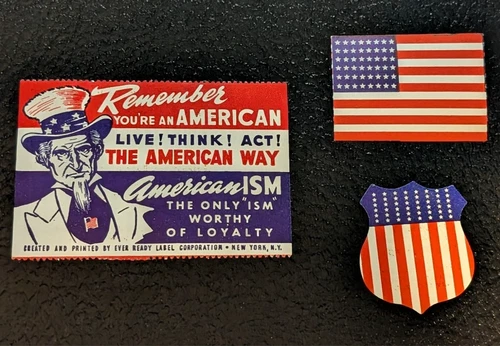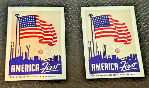 Lot of 2 Vintage WWII Poster Sticker Stamp - America First - Americanism