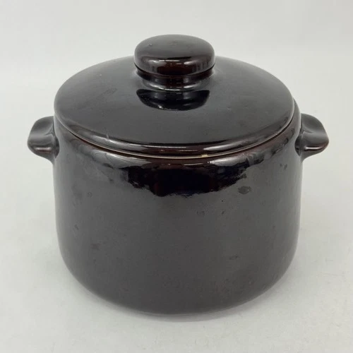 West Bend Bean Pot Stock pot with Lid Brown Glazed Stoneware USA