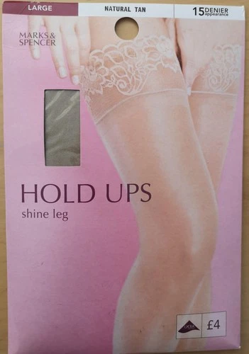 Marks & Spencer Shine Hold Ups Natural Tan L (To 6') Stunning Lace Tops 15 Den