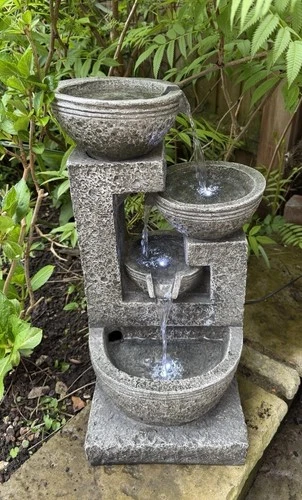 Outdoor Garden Water Feature Fountain with LED Lights – 3 Tier Stone Effect