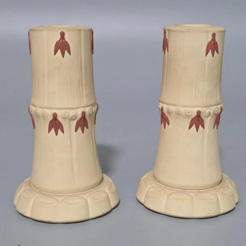 Wedgwood Primrose Terracotta Jasperware Bamboo Candlesticks Candle Holders Pair