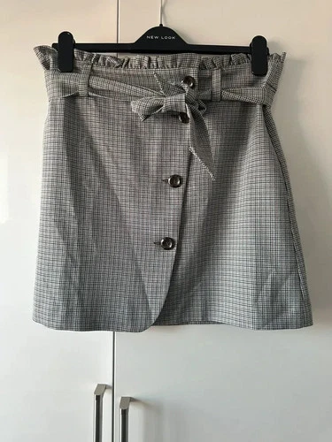George Grey Checked Button-Front Skirt with Tie Waist - Size 12