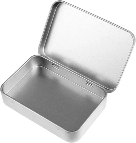 Silver Mini Portable Metal Tin Box with Lid - Rectangular, Hinged, Empty, for Ca