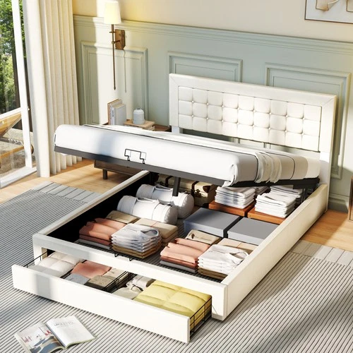 4ft6 Double Size Modern Upholstered Ottoman Bed Frame with Lift-Up Storage Rpczd