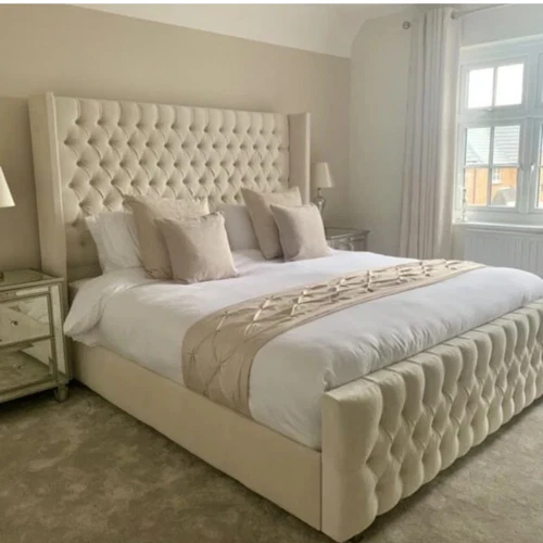 Luxury Winged Bed Frame Plush Velvet Upholstered Ottoman Gas Lift Storage Double