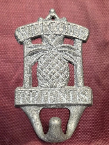 Welcome Friends Wall Mount Silver Tone Pineapple Decorative Hook Aluminum
